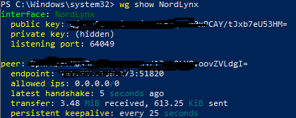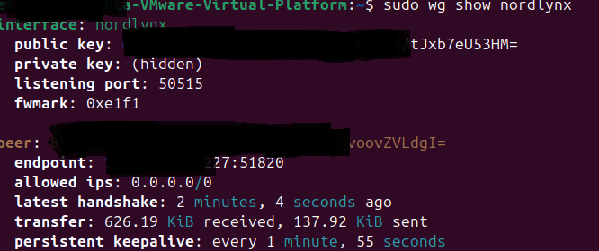 Next, we are going to run wireguard to extract the configuration information from the NordVPN connection.